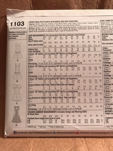 Simplicity Pattern 1103 Misses Dress Sizes 6 8 10 12 14 Uncut Sewing Pattern Ebay